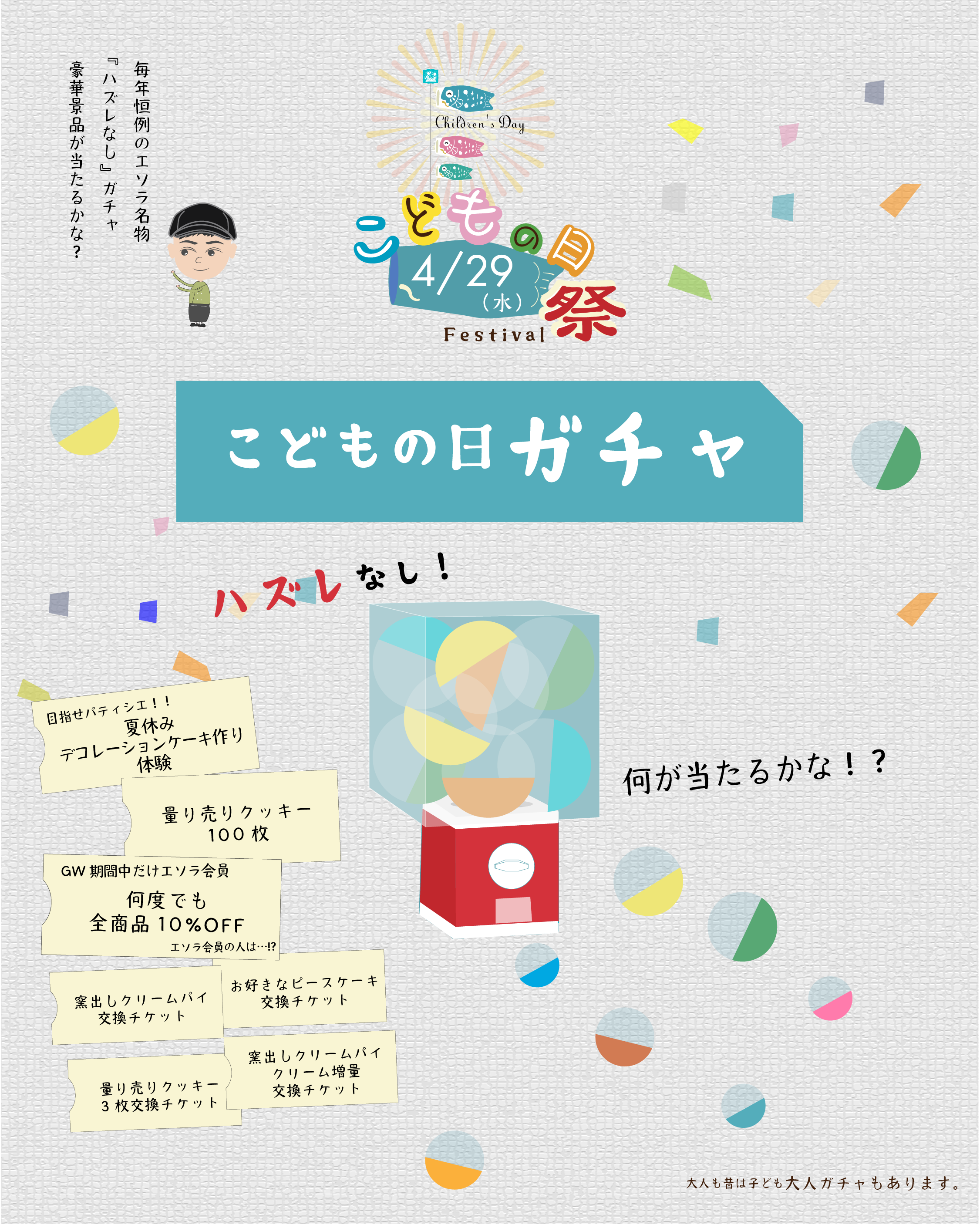 いつもはケーキのお店のエソラリエですが、こどもの日イベントの29日(水)の1日限定で、